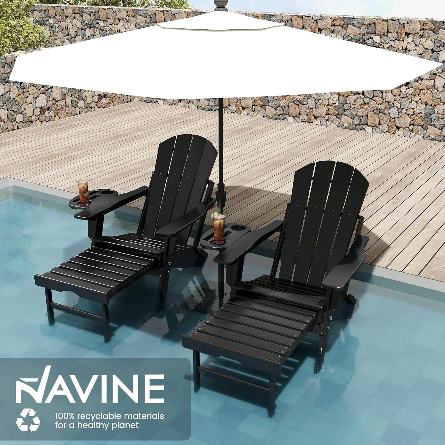 NAVINE Folding Adjustable Adirondack Chairs are made of weather-resistant high-density polyethylene material. Compared with traditional wood and PS chairs, they are sturdy and anti-fading. Advantages of not splitting, cracking, chipping, peeling or rotting. Ideal for outdoor placement The NAVINE chair ensures long-term use even in all outdoor conditions.