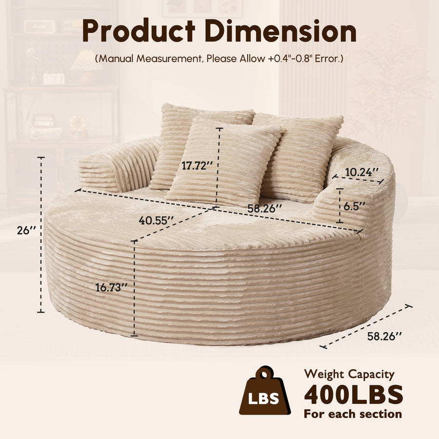 59" O-Shape Modular Couch, Plush Corduroy Fabric, No Assembly Required