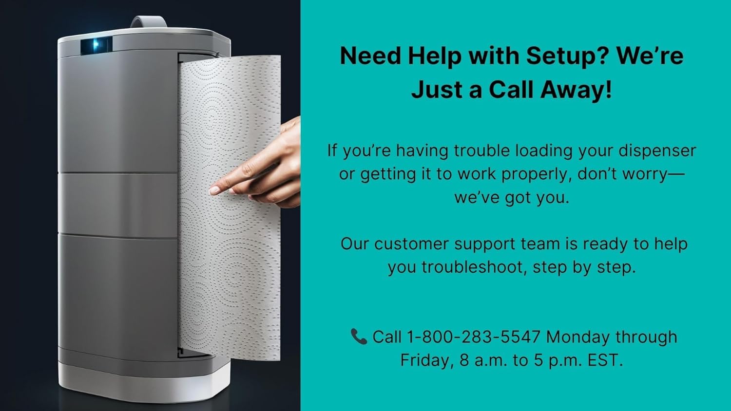 - Ready to be installed in no time; just select a placement, load the paper towel roll, and power it up.